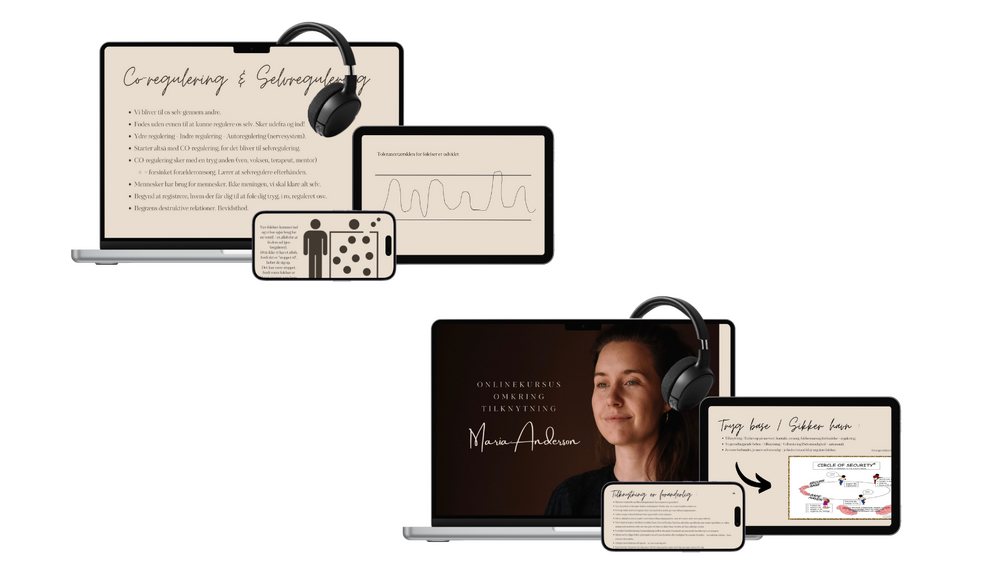 Med kurserne TILKNYTNING og REGULERING lærer du at forstå dit eget og dine børns indre, at skabe en tryg tilknytning og at opøve evnen til at regulere dine egne og dine børns følelser, så i kan få en bedre relation.